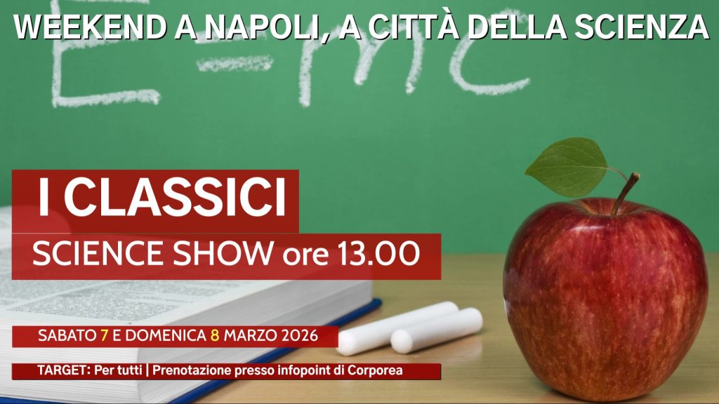 “I Classici” è uno science show ricco di esperimenti sorprendenti: dal paradosso meccanico agli effetti delle candele sotto il vaso, dal curioso peso dell’acqua al palloncino che si gonfia con la CO₂, fino alle cadute sfrenate che sfidano la gravità. Un concentrato di fisica e chimica che stupisce in pochi minuti!