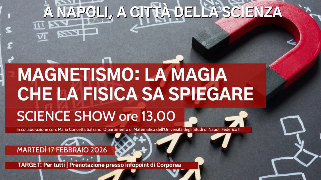 In questo science show viaggeremo nel tempo, dall’antica Grecia fino ai treni del futuro. Faremo esperimenti con bussole e calamite, scopriremo come alcuni animali trovano la strada senza GPS e capiremo come funzionano le casse da cui ascoltiamo la musica.
