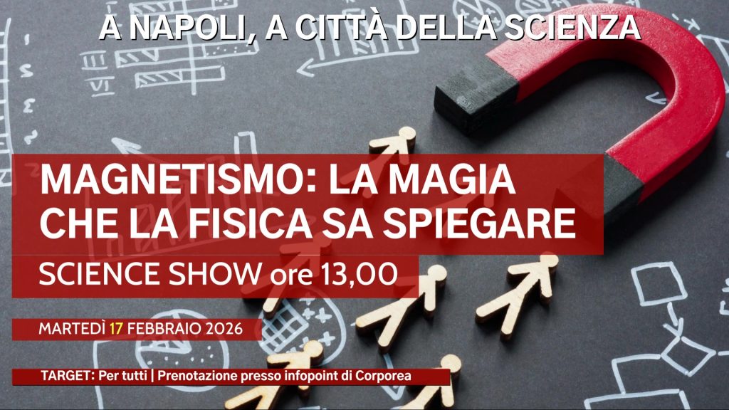 In questo science show viaggeremo nel tempo, dall’antica Grecia fino ai treni del futuro. Faremo esperimenti con bussole e calamite, scopriremo come alcuni animali trovano la strada senza GPS e capiremo come funzionano le casse da cui ascoltiamo la musica.