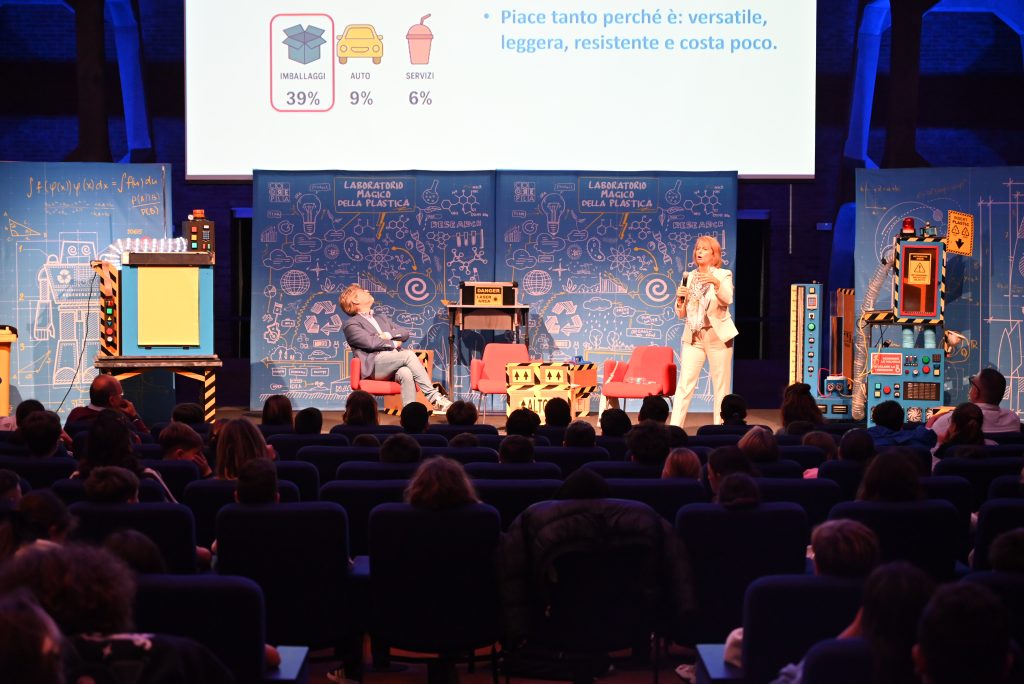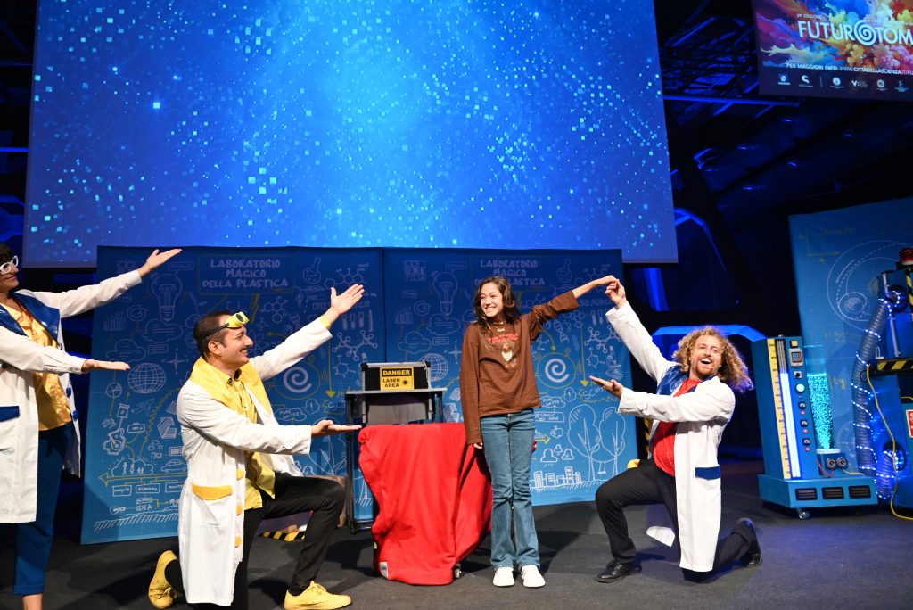 Il racconto scientifico è poi diventato spettacolo con la Conferenza Spettacolo “Magicamente Plastica”, che ha regalato meraviglia e coinvolgimento al giovane pubblico.