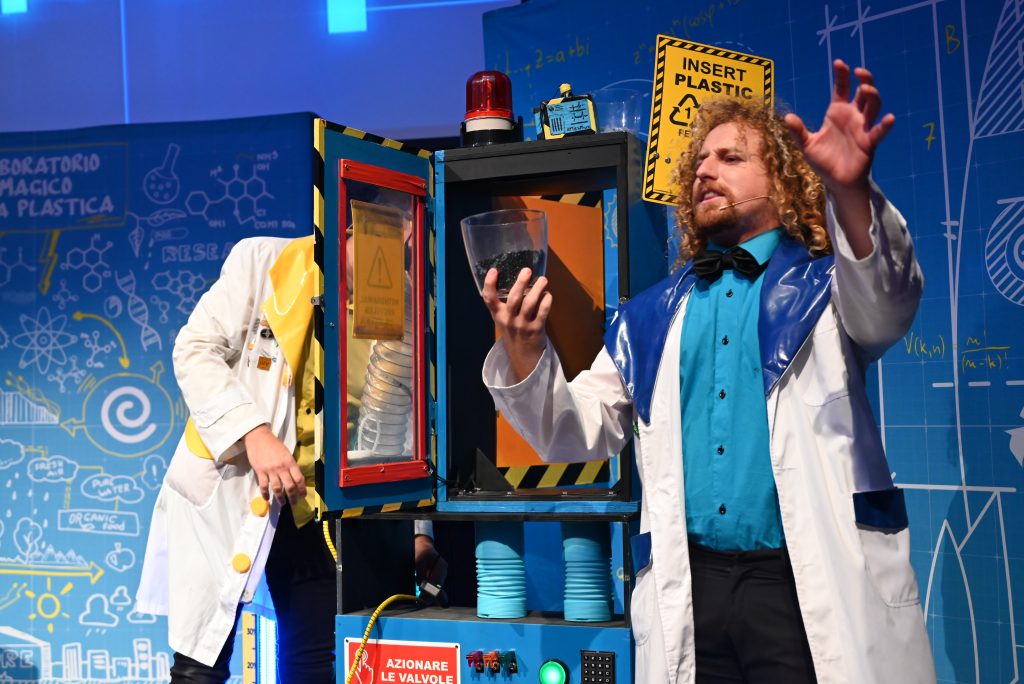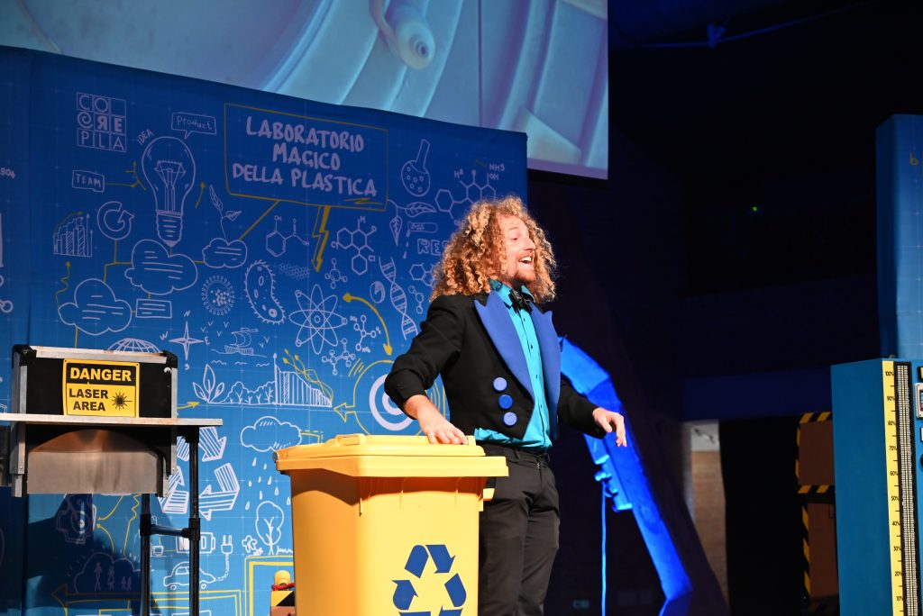 Attraverso esperimenti dal vivo, illusioni e una narrazione dinamica, lo spettacolo ha mostrato in modo tangibile come la plastica possa essere ripensata in chiave sostenibile e trasformata in nuove opportunità.