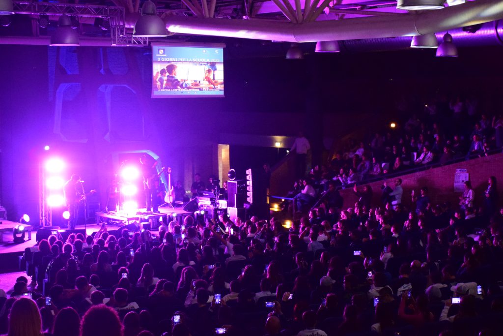 La giornata inaugurale si è aperta con i saluti istituzionali nella Sala Newton, seguiti dal Campania Young Festival – Tocca a noi, promosso dalla Fondazione Campania dei Festival, che ha dato spazio alla creatività dei giovani e ospitato un’esibizione dei THE KOLORS.