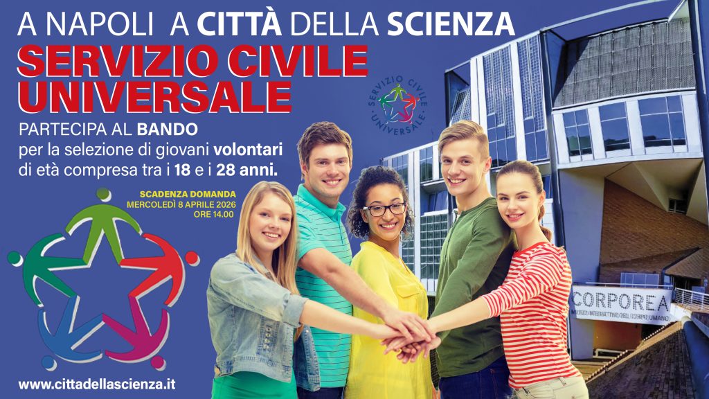È stato pubblicato sul sito del Dipartimento per le Politiche Giovanili il bando per le selezioni delle/dei volontarie/i che vorranno svolgere il proprio Servizio Civile Universale presso Città della Scienza.